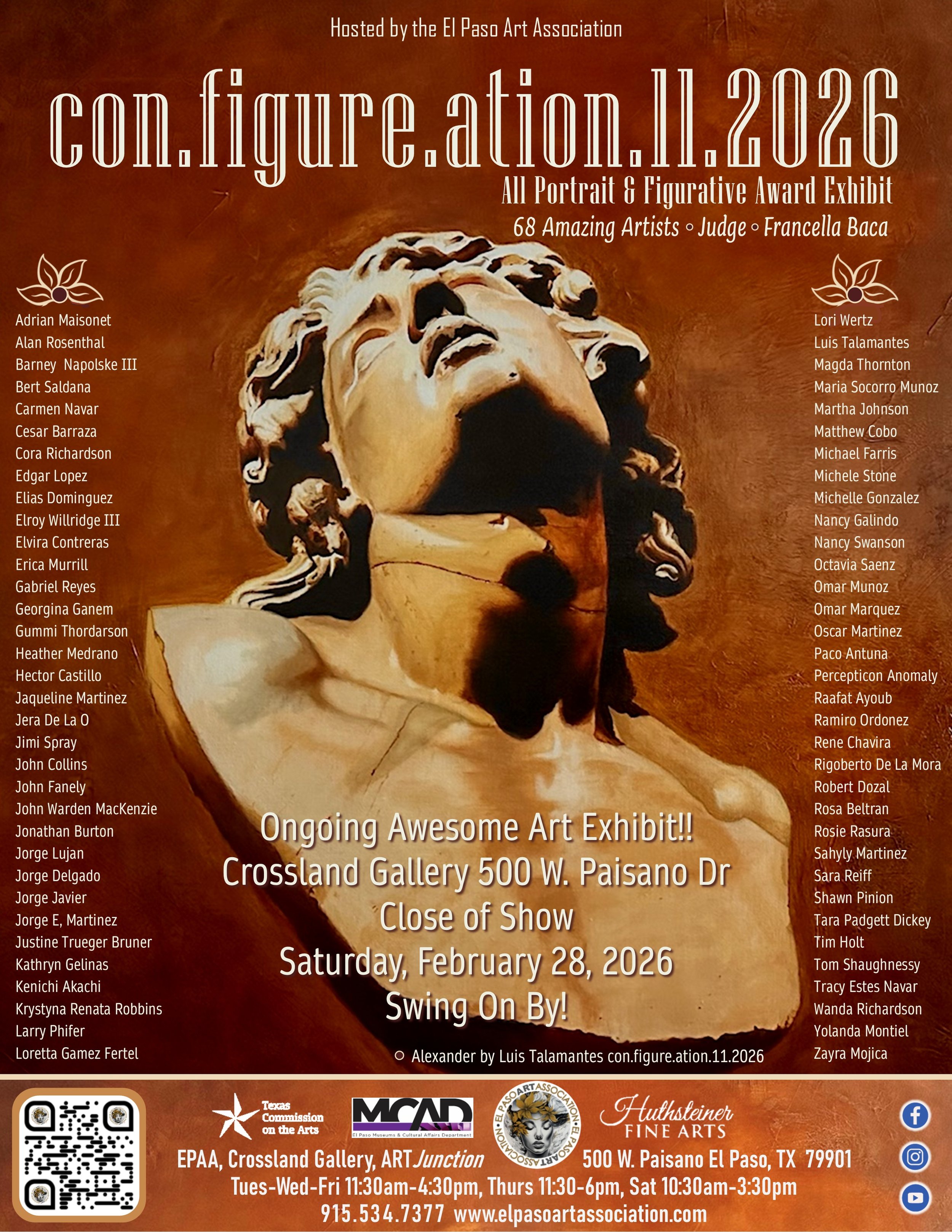 Artists from Las Cruces, El Paso & San Elizario will be making their way to the Crossland Gallery for WOW! An EPAA Members Exhibit! A diverse group of artists & mediums will be on display highlighting their creative passion for art. A range of mediums on view will include; collage, textile art, photography, digital designs, painting, sculpture & more!