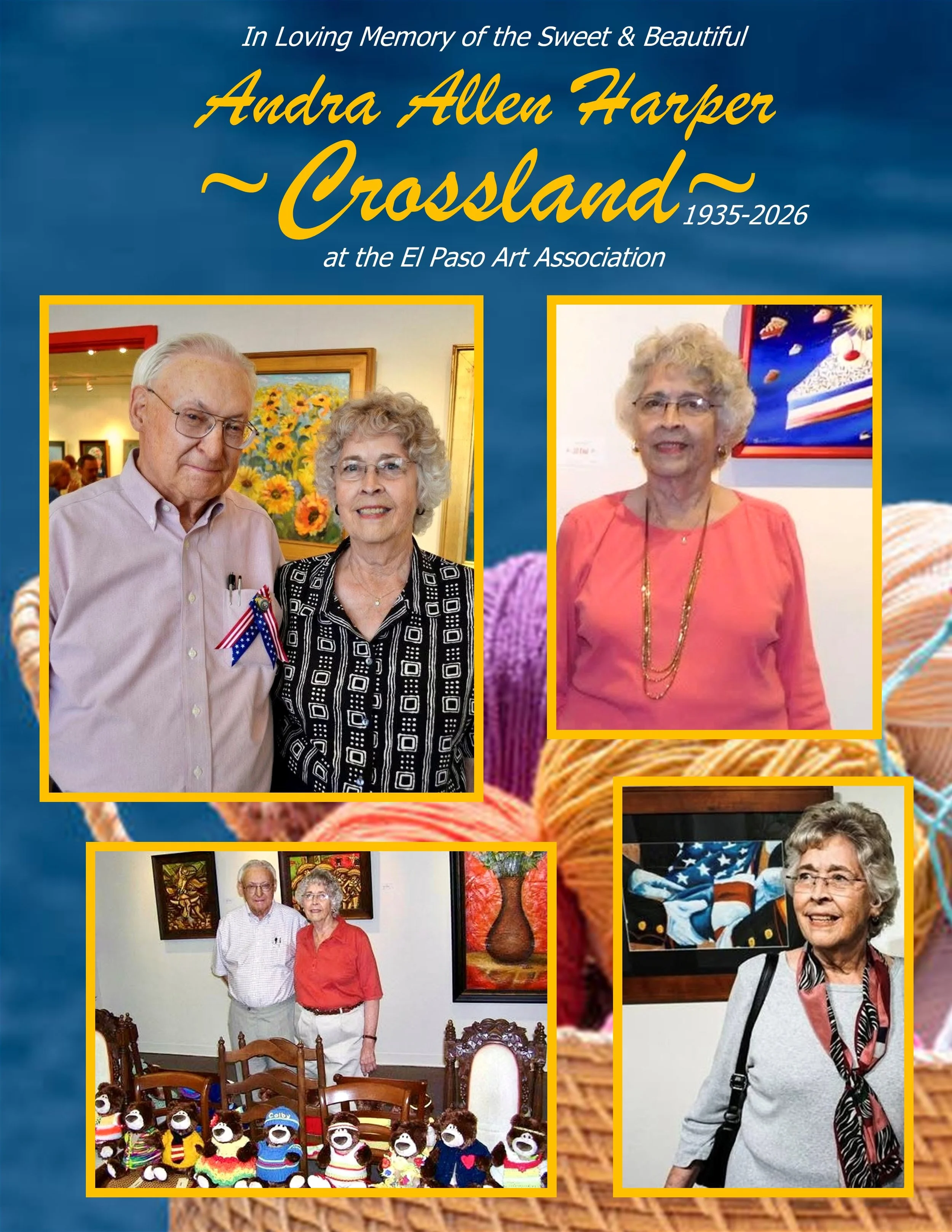 The El Paso Art Association sends heart felt condolences to the Allen Harper Crossland Family with the passing of Andra Crossland.
