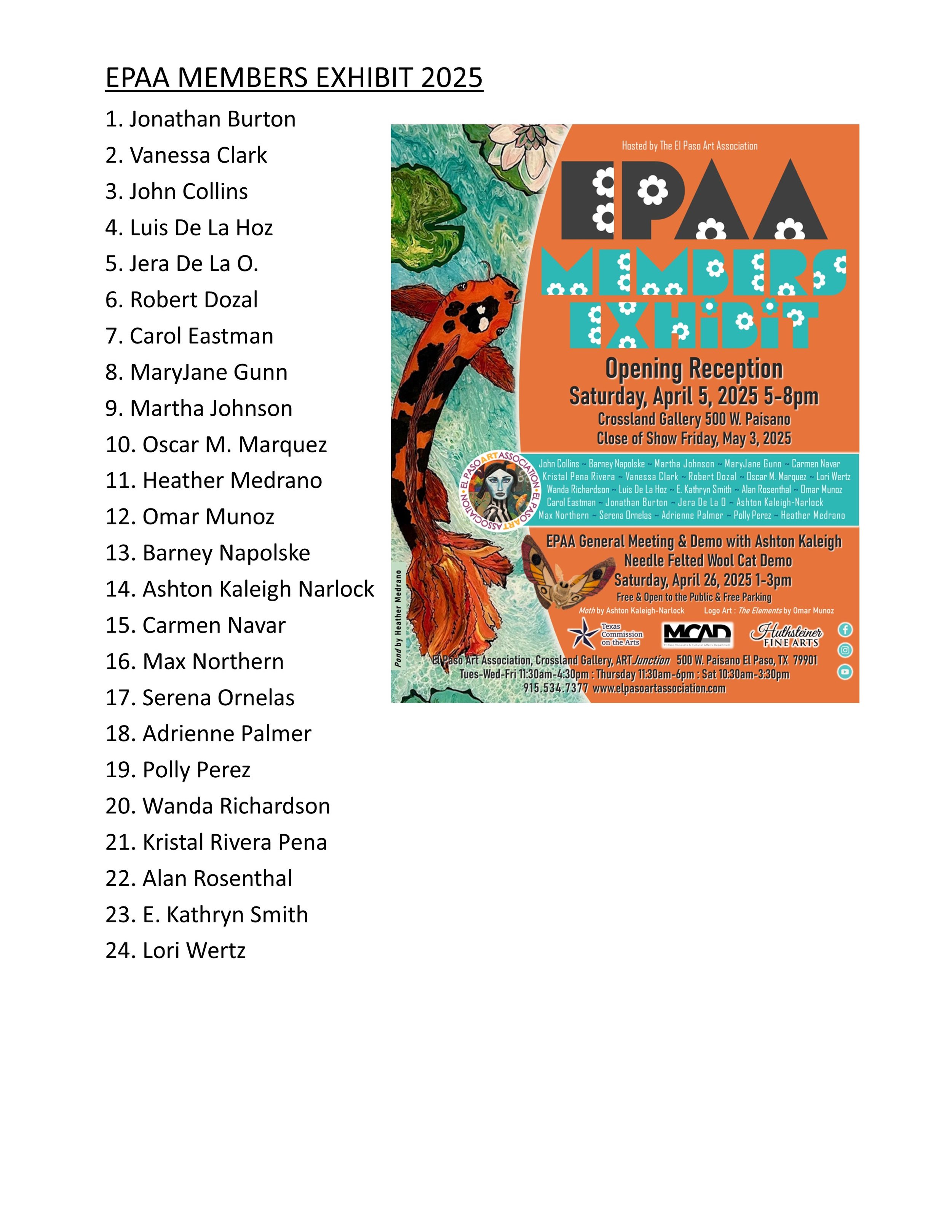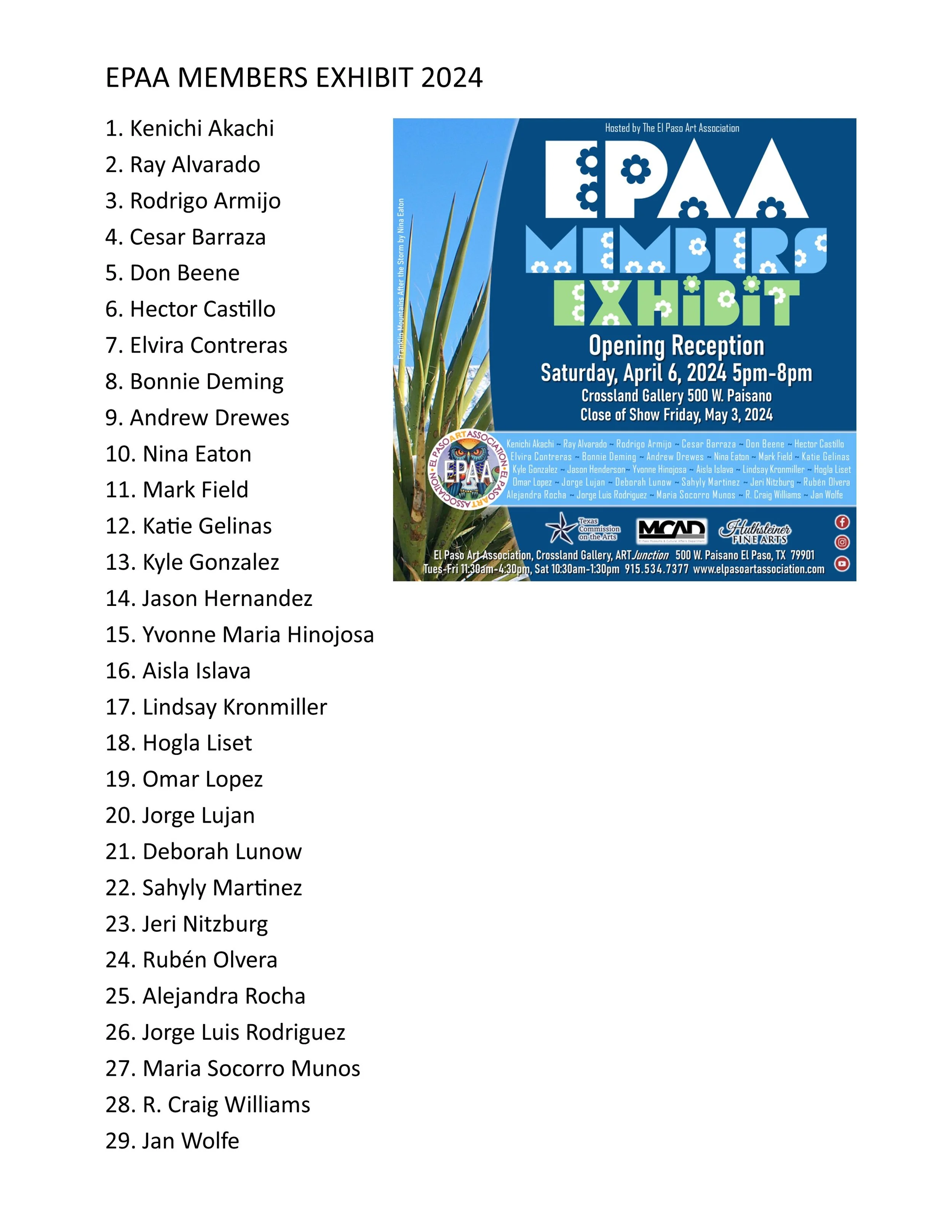 VISIT : WWW.ELPASOARTASSOCIATION.COM