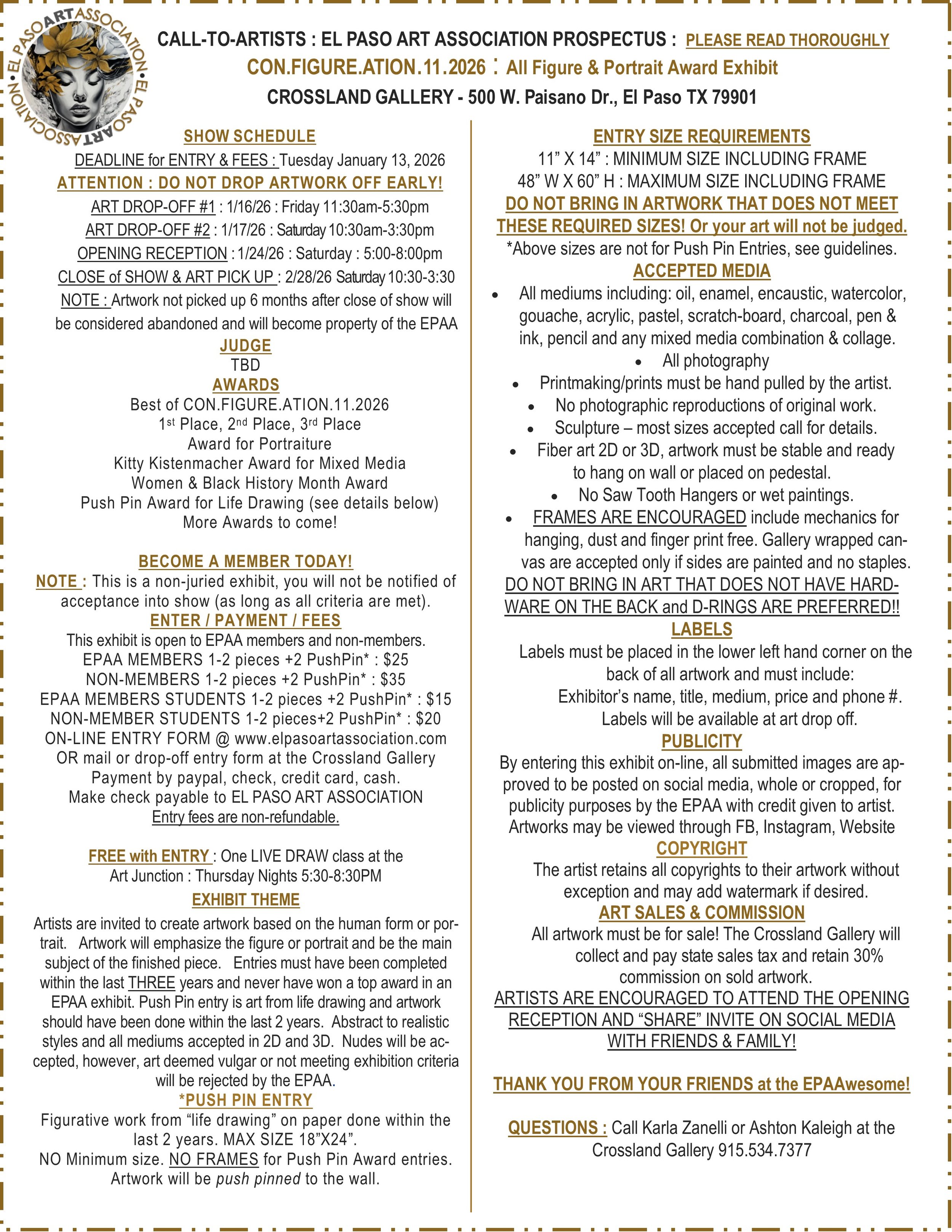Growing in popularity, CON.FIGURE.ATION.11.2026 will surely bring out the who's who of talented figurative artists from El Paso & Las Cruces & beyond!!
